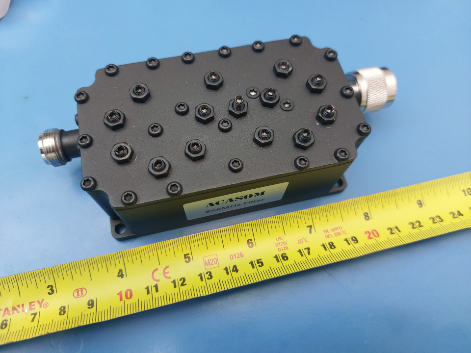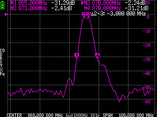 First port of call was one of the dinky SAW filters which are widely available for a few quid. Apparently they can handle 20dBm, and given our antenna gain we were only at 16dBm to stay legal so let's have a bash with one of those first.