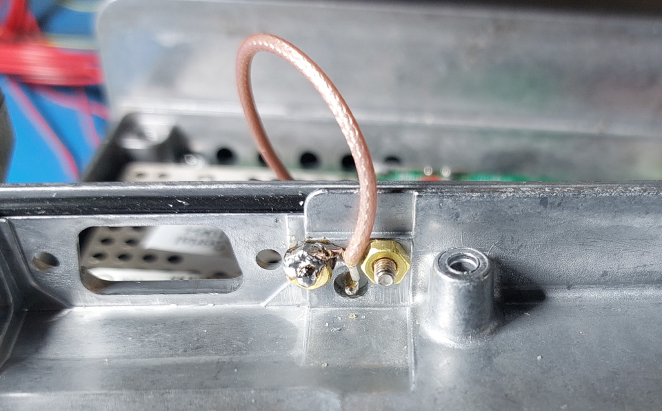 There's a dimple in the casting of the top case / cover which can be drilled out and an SMA installed: